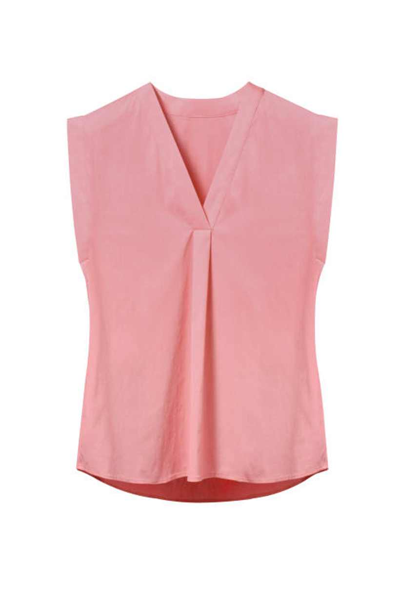 Description: Cotton/Polyester Curved hem sleeveless blouse