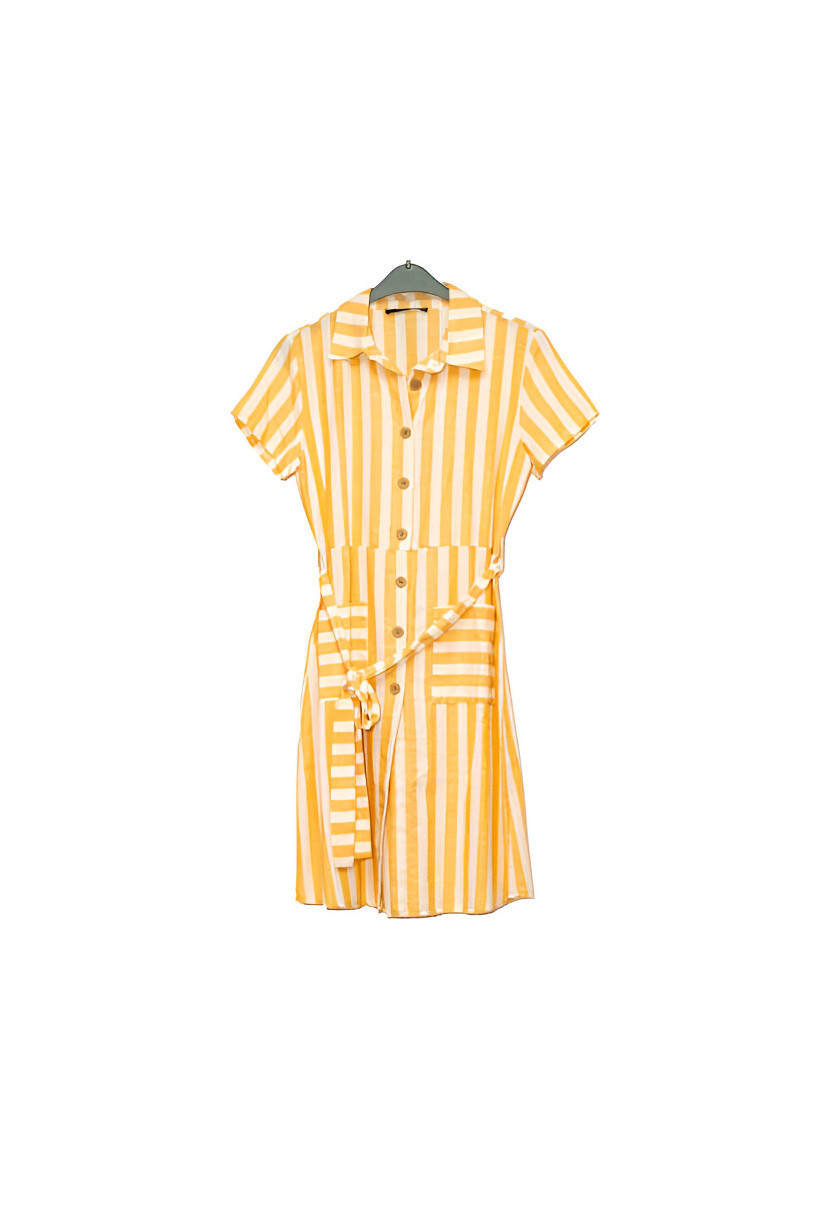 Ladies Striped Short-Sleeve Shirt Dress